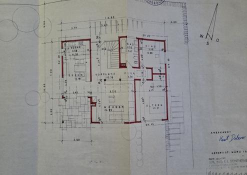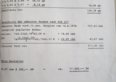 Das ursprüngliche Haus (Platz-Fertighaus) wurde 1976 erbaut, 1986 wurde der vormalige Freisitz in einen Wintergarten umgebaut.
