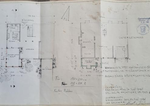 Das Haus ist voll unterkellert. Unter dem Anbau des Wintergartens ist noch ein Gartengerätelager eingerichtet. Des Weiteren ist noch ein Holzlager auf der Nordseite beim Hauseingang vorhanden welches auch für Mülleimer, Papiertonnen oder Abstellbereich genutzt werden kann. Der Dachspitz ist nicht ausgebaut.