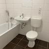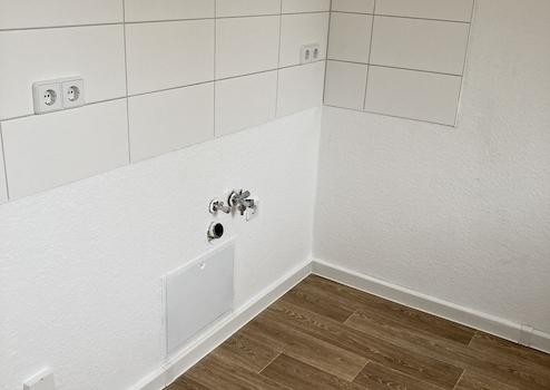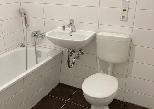 - modern gefliestes Bad mit Wanne und Waschmaschinenanschluss