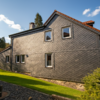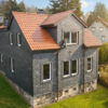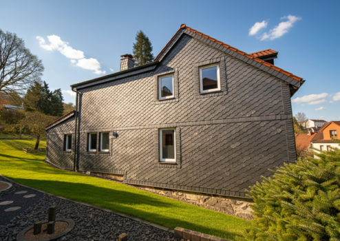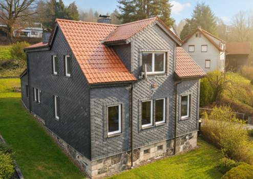 überwiegend Naturschiefer (2000) ca. 6 cm Dämmung, Anbau verputzt