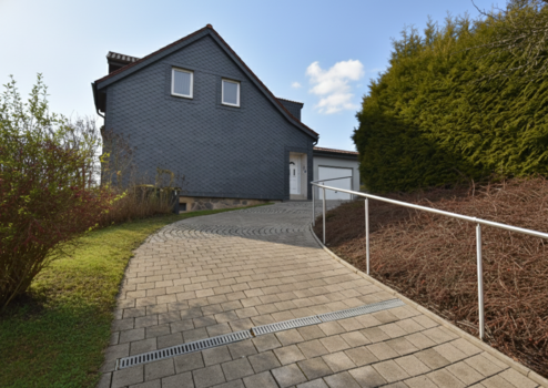 Einfahrt gepflastert mit Edelstahlgeländer (2011),