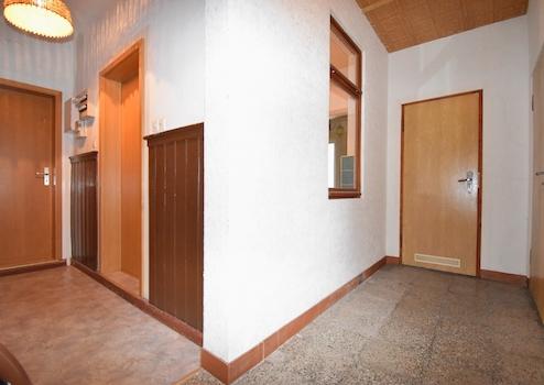 überwiegend Tapete, Bäder, Küche = Fliesen, Paneele, Flur, Treppe = Holzvertäfelung