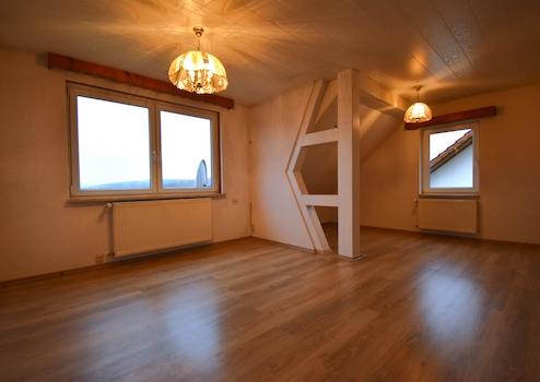 Dachgeschoss = Bad mit Wanne, WC, Waschtisch