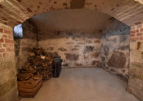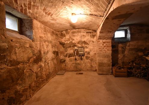 Kellerwände: Bruchstein mit hintermauerten Ziegelsteinen
