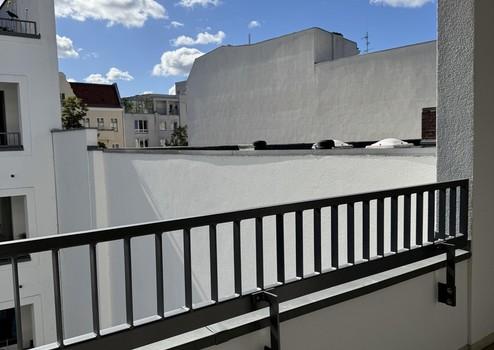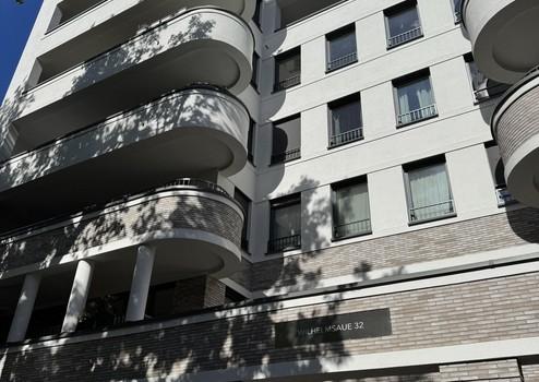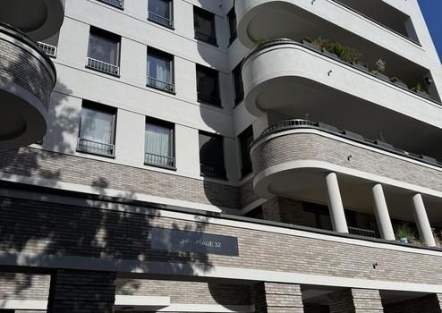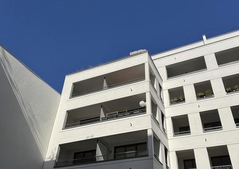 Diese moderne 1-Zimmer-Wohnung befindet sich im 4. Obergeschoss des ruhigen Hofhauses der exklusiven Wohnanlage Wilhelmsaue 32 in Berlin-Wilmersdorf. Der im Jahr 2020 errichtete Neubau überzeugt durch klare Architektur, hochwertige Materialien und energieeffiziente Bauweise (Energieeffizienzklasse B).