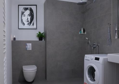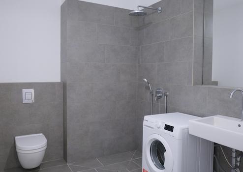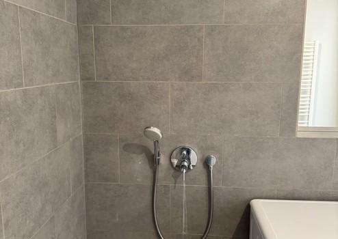 Hochwertiges Bad mit Dusche und Feinsteinzeug (40 × 60 cm)