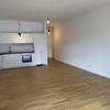 Der großzügige Wohn-/Essbereich mit offener Küche bietet viel Platz und Flexibilität bei der Möblierung. Bodentiefe Fenster sorgen für eine helle, freundliche Atmosphäre und führen auf den sonnigen Balkon mit Blick in den begrünten Innenhof.
