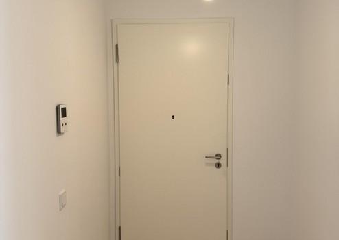 Das moderne Bad ist mit großformatigem Feinsteinzeug und hochwertigen Sanitärobjekten ausgestattet. Die Kombination aus Eichenparkett, Fußbodenheizung und elektrischen Rollläden schafft ein komfortables Wohnambiente.