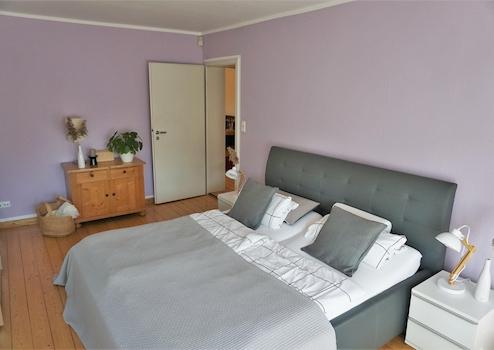 Echtholzdielen, neuer Kaminofen, begehbarer Kleiderschrank, Einbauküche mit Kücheninsel und angrenzendem Hauswirtschaftsraum, ein großer Süd-Balkon und ein kleiner Balkon, großes Vollbadezimmer und ein Gäste-WC, Kellerraum, optionale Garage