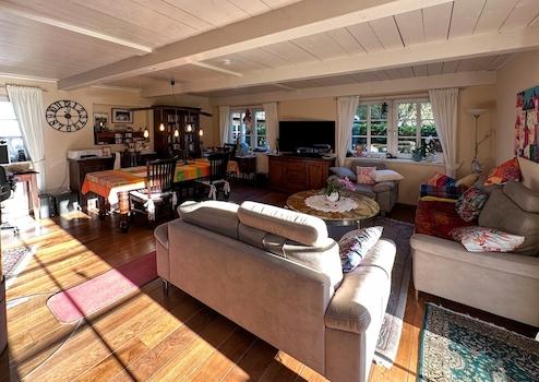 Das Haus umfasst im Erdgeschoss ca. 100 m² Wohnfläche, die sich lichtdurchflutet und gemütlich präsentieren. Natürliche Materialien, warme Farben und der Blick ins Grüne machen jeden Raum zu einem Rückzugsort.