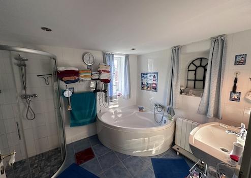 Das Dachgeschoss wurde zusätzlich wohnähnlich ausgebaut und bietet ca. 50 m² Fläche (inkl. Bodenraum) – ideal als Atelier, Gästezimmer oder gemütlicher Rückzugsbereich unter Reet.