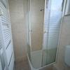 Das moderne Bad mit Duschkabine aus Glas, Handtuchwärmer und Fenster lädt zur Erholung ein.