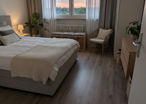 - Schlafzimmer (optional): Bett & Kleiderschrank