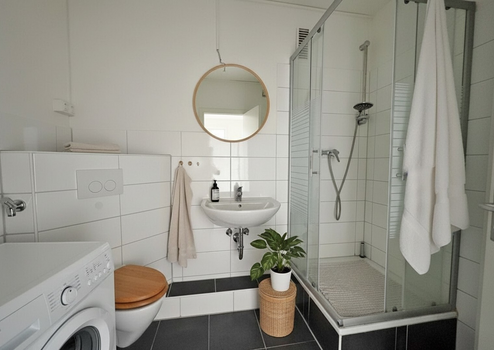 Zur Veranschaulichung der möglichen Ausstattung wurden die Wohnungsbilder virtuell mit Möbeln ergänzt, sodass Sie sich die finale Möblierung beispielhaft bereits vorstellen können. Neben diesen Bildern finden Sie auch Bilder zum IST-Zustand der Wohnung. Die Wohnung wird (teil-)möbliert vermietet und bietet eine Ausstattung, die den Einzug besonders komfortabel macht. Die bereits vorhandene moderne Einbauküche wird mit einem Kühlschrank, Herd, Spüle, Geschirrspülmaschine sowie grosszügigen Schränken ausgestattet und ermöglicht eine sofortige Nutzung. Ein Waschtrockner im Badezimmer sorgt für zusätzliche Bequemlichkeit im Alltag. Im Wohnbereich stehen ein Bettsofa sowie ein passender Wohnzimmertisch bereit, sodass sowohl gemütliche Abende als auch die Unterbringung von Gästen problemlos möglich sind.