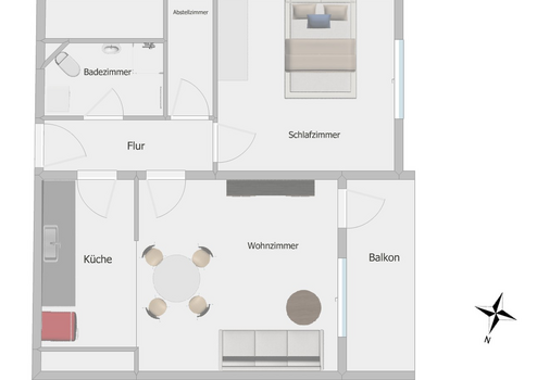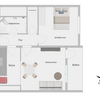 - Wohnzimmer-Möbel (optional): Bettsofa, Tisch & Stühle