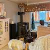 Im Erdgeschoss erwartet Sie eine gut ausgestattete Einbauküche, die offen in den Essbereich übergeht – ideal für gesellige Stunden. Ein komfortables Bad und ein gemütliches Schlafzimmer ergänzen den Grundriss. Das Wohnzimmer mit Kamin schafft besonders im Winter eine warme Atmosphäre und bietet Zugang zum sonnigen Balkon.