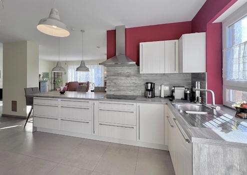 Stellen Sie sich vor, wie Sie vom Schlafzimmer direkt auf Ihre Terrasse treten, den Blick über den romantischen Teich und den 220 m² großen Garten schweifen lassen. Hochwertige Details wie der massive Schmiedezaun, die Doppelgarage und drei exklusive Bäder unterstreichen den repräsentativen Charakter dieses Anwesens. Hier wurde an alles gedacht – vom praktischen Speisekammer bis zur dreifachen Isolierverglasung.