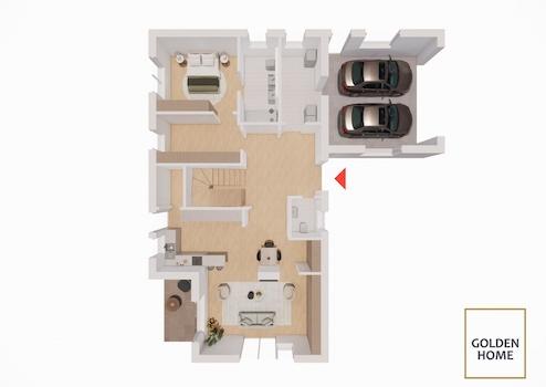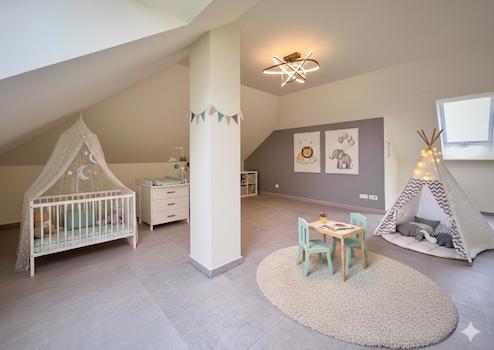 Auf 182 m² Wohnfläche erleben Sie ein Wohnerlebnis der Extraklasse. Das Erdgeschoss besticht durch eine offene Luxusküche mit Kamin und edlen Natursteinfliesen, während bodentiefe Fenster jeden Raum mit Licht fluten.