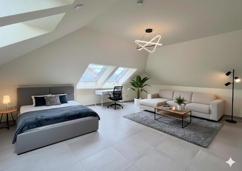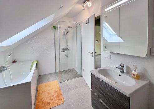 Dank Wärmepumpe, Fußbodenheizung und Klimaanlage genießen Sie zu jeder Jahreszeit perfektes Klima bei minimalen Energiekosten. Das durchdachte Konzept bietet mit 6 Zimmern auf zwei Etagen maximale Flexibilität für Home-Office, Gäste oder Familie.