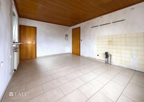 Das Wohnzimmer ist hell und funktional geschnitten, ideal für einen gemütlichen Ess- und Wohnbereich. Die Küche und das Badezimmer wurden 2018 modernisiert und sind mit zeitlosen Fliesen ausgestattet. Teilweise erneuerte Bodenbeläge sorgen für ein gepflegtes Wohngefühl.