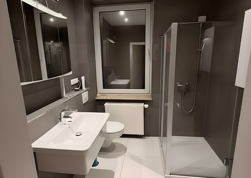 Separate, moderne Badezimmerausstattung mit erneuerter Dusche