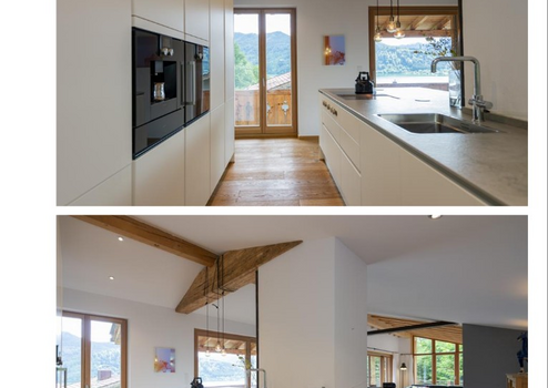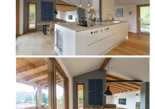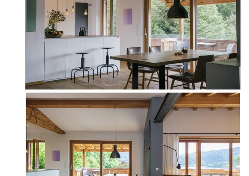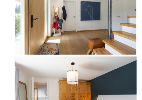 Das ursprüngliche Haus aus den 1980er Jahren wurde 2017 vollständig kernsaniert und neugestaltet. Ein Anbau in Vollholzbauweise und integrierter Doppelgarage wurde 2017 neu errichtet. Das Bestandshaus bietet drei Schlafzimmer, zwei Bäder und einen ca. 70 m² großen, offenen Wohn- und Essbereich mit Sichtdachstuhl und wunderschönen Seeblick.