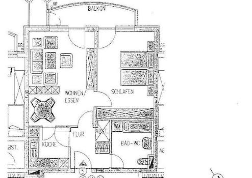 Die Wohnung verfügt über ein großes Wohnzimmer mit Zugang zur Küche und zum Schlafzimmer, ein Bad mit Badewanne und Waschmaschinenanschluss, ein helles Schlafzimmer und eine offene Abstellkammer im Flur. Der große Balkon ist sowohl vom Schlafzimmer als auch vom Wohnzimmer erreichbar und bietet Ihnen einen schönen Blick in den Innenhof. Die gut ausgestattete Küche verfügt über zwei separate Eingänge.