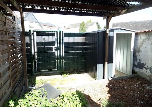 Kleiner Garten, Terrasse & Nebengebäude – pflegeleicht und vielseitig nutzbar.