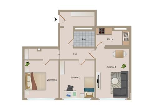Diese bezugsfreie 3-Zimmer-Wohnung in der Mitte überzeugt durch ihre durchdachte Raumaufteilung, moderne Ausstattung und eine helle, freundliche Atmosphäre. Zwei großzügig geschnittene Schlafzimmer bieten viel Platz für individuelle Wohnbedürfnisse – ideal für Paare, Familien oder auch als Kombination aus Wohnen und Homeoffice.