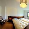 Ein weiteres, kleineres Schlafzimmer zeigt nach Süden mit einem Fenster zur Loggia und Blick auf die Berge.