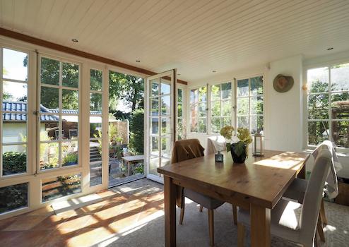 Im Erdgeschoss überzeugt der einladende Wohnbereich mit Kamin und direktem Zugang zur offenen Wohnküche mit gemütlichem Essplatz und dem lichtdurchfluteten Wintergarten (Baujahr 1999). Ein weiteres Zimmer ist über eine zweiflügelige Schiebetür mit dem Wohnzimmer verbunden und kann vielseitig genutzt werden.
