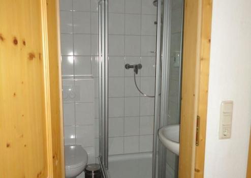 Jedes der Zimmer hat seine eigene Nasszelle (WC, Dusche, Waschbecken, Fön, Hocker, Wandregal, Duschgel-Spender, Kosmetiktücher).