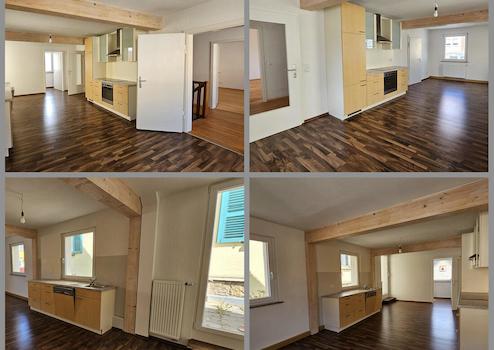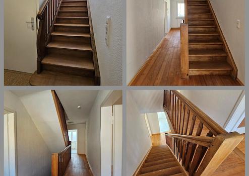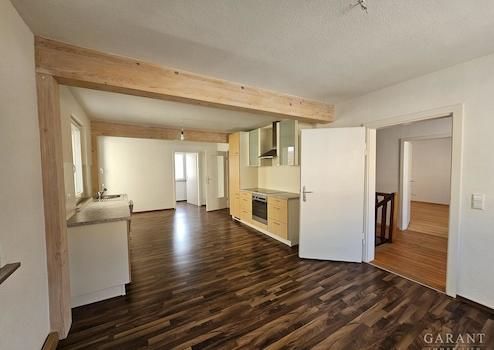 In die renovierte 5-Zimmer-Wohnung kann sofort eingezogen werden und bietet auf zwei Etagen Platz für die Familie mit Kindern bzw. Homeoffice-Räume. Im 1. Obergeschoss finden Sie eine großzügige Wohn-/Essküche, Dachterrasse, Wohn- und Schlafzimmer, Duschbad sowie Hauswirtschaftsraum. Im Dachgeschoss der Schlaftrakt mit 3 Räumen, Bad mit Eckbadewanne, Dusche, separate Toilette.