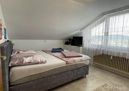 Im Obergeschoss erwarten Sie zwei gemütliche Schlafzimmer, eine Küche mit Einbauküche und angeschlossenem Essplatz, ein Bad mit WC und Dusche sowie ein großzügiges, lichtdurchflutetes Wohnzimmer mit Zugang zum einladenden Balkon - ideal zum Entspannen an sonnigen Tagen.