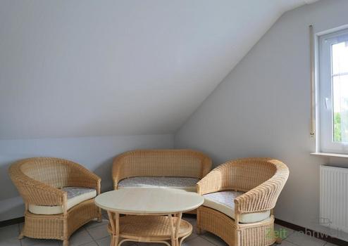 ### Please note the availability date! Bitte das Verfügbarkeitsdatum beachten! ### hübsches möbliertes Apartment im 3.Obergeschoss = Dachgeschoss, unweit zur Jenaer Innenstadt; helles Wohnzimmer mit Couch, Sesseln, ...