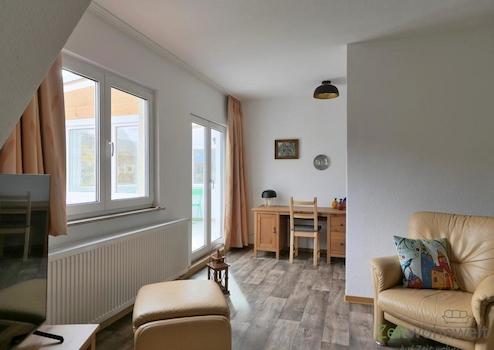 ### Please note the availability date! Bitte das Verfügbarkeitsdatum beachten! ### höbsche möblierte Wohnung in ruhiger Wohnlage in Waldkappel; WLAN; großes Wohnzimmer mit modernen rustikalen Möbeln, Sofa, Esstisch, ...