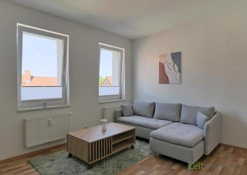 ### Please note the availability date! Bitte das Verfügbarkeitsdatum beachten! ### komplette möblierte Etage in ruhiger Seitengasse in Halle-Trotha, WLAN; bei diesem Angebot werden zwei fast Bauglieche Wohnungen auf einer Etage zusammengelegt; zwei helle Wohnzimmer jeweils mit Eckcouch, Sideboard, Schrankwand und TV; jeweils zwei Schlafzimmer mit zwei Einzelbetten und Nachtschrank, jeweils ein drittes Zimmer mit Kleiderschränken und Schreibtisch; zwei kleine Küchen mit Esstisch, EBK, Spülmaschine und Waschmaschine; 2x Bad mit Dusche und WC; großer zusammengelegter Wohnungsflur; PKW-Stellplatz für 25,00 Euro auf dem Grundstück möglich; Pauschalmiete 2.200,00 Euro (bei 2 Person); Vermietung an max. 4 Personen; Kaution 3.000,00 Euro; Endreinigung 210,00 Euro; Mindestmietdauer 3 Monate; Pflichtangaben zum Energieausweis: Energieausweis gültig bis: 21.11.2026; Baujahr Gebäude: 1920; Energieausweis: nach Verbrauch; Energieverbrauch: 91.45 kWh/(m²a); Energieeffizienzklasse: C; Primärer Energieträger: Erdgas H