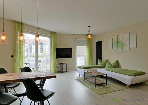 ### Please note the availability date! Bitte das Verfügbarkeitsdatum beachten! ### neu möblierte 2-Zimmer-Wohnung mit Balkon in der Dresdener Innenstadt; WLAN und Reinigungsservice mit Wäschewechsel inklusive; Aufzug im Haus; großes Wohnzimmer mit Eckcouch (auch als Bett umbaubar!), separater Esstisch, TV und Ausgang zum halbrunden Balkon; moderne Einbauküche in einer Seitennische am Wohnzimmer; großes Schlafzimmer mit Doppelbett und Stauraum; Bad mit Wanne und WC; Wohnungsflur mit Garderobe; Pauschalmiete 1.500,00 Euro bei 1 Person; wird an max. 3 Personen vermietet; Kaution 1.800,00 Euro; Endreinigung 50,00 Euro; Mindestmietdauer 2 Monate; Pflichtangaben zum Energieausweis: Energieausweis gültig bis: 09.05.2028; Baujahr Gebäude: 1997; Energieausweis: nach Verbrauch; Energieverbrauch: 47.0 kWh/(m²a); Energieeffizienzklasse: A; Primärer Energieträger: Nah-/Fernwärme; Erdgas L