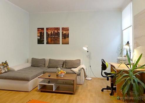 ### Please note the availability date! Bitte das Verfügbarkeitsdatum beachten! ### hübsches möbliertes Apartment im 3.Obergeschoss = Dachgeschoss, unweit zur Jenaer Innenstadt; helles Wohnzimmer mit Couch, Sesseln, ...