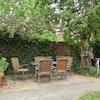 (EF0476_M) Dresden: Radebeul, kleines möbliertes Häuschen, Sitzecke im Garten, für Wochenendheimfahrer