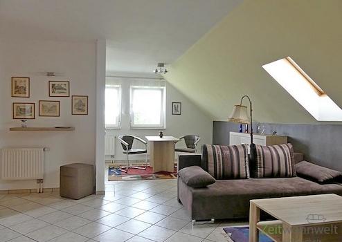 (EF0468_M) Dresden: Moritzburg, modern möblierte Dachwohnung mit WLAN und Mini-Arbeitszimmer, Reinigungsservice möglich