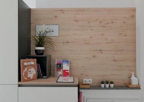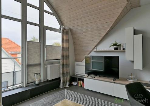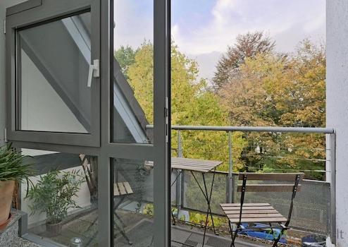 ### Please note the availability date! Bitte das Verfügbarkeitsdatum beachten! ### exklusives Apartment mit Klimaanlage in bevorzugter Wohnlage "Am Hopfenberg"; großes Wohnzimmer mit großem Rundbogenfenster; Eckcouch, Sideboard und TV; offene Küche mit rundem Esstisch; kleiner Balkonaustritt am Wohnzimmer und überdachter Balkon mit Sitzmöbeln am Treppenhaus; Schlafzimmer mit breitem Bett und Kleiderablage; Bad mit Dusche, WC und Waschmaschine mit Trockner; Flurbereich mit Garderobe und großem Kleiderschrank; WLAN und PKW-Stellplatz (mit Wallbox) inklusive; die angegebene Miete von 1.060,00 Euro (bei 1 Person) setzt sich zusammen aus Pauschalmiete 1.030,00 Euro zzgl. NK-Vorauszahlung 30,00 Euro für Strom; wird an max. 2 Personen vermietet; Kaution 1.400,00 Euro; Endreinigung Mietersache; Mindestmietdauer 3 Monate; Pflichtangaben zum Energieausweis: Energieausweis gültig bis: 02.02.2031; Baujahr Gebäude: 1935; Energieausweis: nach Verbrauch; Energieverbrauch: 148.0 kWh/(m²a); Energieeffizienzklasse: E; Primärer Energieträger: H-Gas/Schweres Erdgas