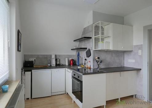 ### Please note the availability date! Bitte das Verfügbarkeitsdatum beachten! ### neu renovierte Wohnung in KS-Oberzwehren in einem freistehenden Wohnhaus mit Garten in ruhiger Seitenstraße; helles Wohnzimmer mit Eckcouch, Sideboard, TV und Glas-Schreibtisch; großes Schlafzimmer im Retro-Look mit Doppelbett und zwei Kleiderschränken; separate Küche mit kleinem Esszimmer; Bad mit Dusche und WC, Wohnungsflur mit Garderobe und Balkon; WLAN, Grundreinigung inklusive; Pauschalmiete 950,00 Euro (bei 1 Person); Vermietung an max. 2 Personen; Kaution 1.200,00 Euro; Endreinigung Mietersache; keine Waschmaschine vorhanden; Mindestmietdauer 3 Monate; Pflichtangaben zum Energieausweis: Energieausweis liegt vermieterseits nicht vor, daher entfallen diese Angaben vorerst (§87, GEG)