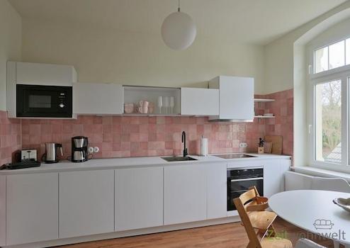 ### Please note the availability date! Bitte das Verfügbarkeitsdatum beachten! ### stilsicher neu möblierte Wohnung in Gera-Röppisch; WLAN, PKW-Stellplatz und Gartenmitnutzung inklusive; großes Wohnzimmer mit Sesseln, Kommode, XXL-TV, historischem Kaminofen und Ausgang zum überdachten Balkon; Schlafzimmer mit breitem Boxspringbett, Kleiderschrank und kleinem Schreibtisch; Wohnungsflur mit Sitzecke und Garderobe; Wohnküche mit neuer EBK und rundem Esstisch; Bad mit Dusche, Wanne und WC, kleiner Hauswirtschaftsraum mit Waschmaschine; Mindestmietdauer 3 Monate; Pauschalmiete 1.000,00 Euro (bei max. 1 Person); Kaution 1.200,00 Euro; Endreinigung Mietersache; monatlicher Heizkostenzuschlag 50,00 Euro von Oktober bis einschließlich April; 14 tägiger Reinigungsservice für monatlich 40,00 Euro; Pflichtangaben zum Energieausweis: Energieausweis gültig bis: 26.11.2031; Baujahr Gebäude: 1908; Energieausweis: nach Bedarf; Energieverbrauch: 234.0 kWh/(m²a); Energieeffizienzklasse: G; Primärer Energieträger: Heizöl EL
