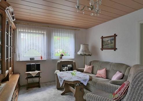 ### Please note the availability date! Bitte das Verfügbarkeitsdatum beachten! ### preiswerte möblierte Wohnung in EF-Salomonsborn mit separatem Hauseingang; ruhige Wohnlage, Sitzecke im Garten; WLAN und PKW-Stellplatz; Wohnzimmer mit großer Couch, Sessel, rustikaler Schrankwand, Sideboards und TV; kleines Schlafzimmer zum Garten; separate Küche mit kleinem Esstisch, Bad mit Dusche und WC, Wäschewechsel inklusive; keine Waschmaschine vorhanden; wird nur an 1 Person und Wochenendheimfahrer vermietet; Pauschalmiete 530,00 Euro; Kaution 800,00 Euro; Mindestmietdauer 3 Monate; Endreinigung Mietersache; Pflichtangaben zum Energieausweis: Energieausweis gültig bis: 27.06.2033; Baujahr Gebäude: 1995; Energieausweis: nach Verbrauch; Energieverbrauch: 89.7 kWh/(m²a); Energieeffizienzklasse: C; Primärer Energieträger: Erdgas H