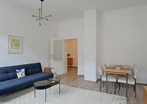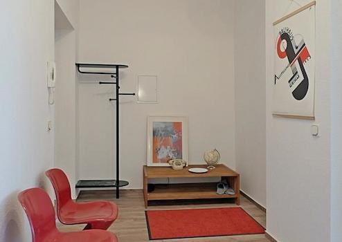 ### Please note the availability date! Bitte das Verfügbarkeitsdatum beachten! ### neu renovierte, möblierte Wohnung im Coolen Retro-Style der 1970er Jahre: WLAN inklusive; helles Wohnzimmer mit Sofa, Sideboard, TV, und Esstisch mit 4 Stühlen; Schlafzimmer mit Doppelbett; separate Küche mit neuer EBK und Waschmaschine; Bad mit Dusche und WC, großer Wohnungsflur mit Garderobe; Pauschalmiete 960,00 Euro (bei 1 Person); wird an max. 2 Personen vermietet; Kaution 1.500,00 Euro; Endreinigung 100,00 Euro; Mindestmietdauer 3 Monate; Pflichtangaben zum Energieausweis: Energieausweis gültig bis: 30.09.2028; Baujahr Gebäude: 1920; Energieausweis: nach Verbrauch; Energieverbrauch: 137.3 kWh/(m²a); Energieeffizienzklasse: E; Primärer Energieträger: Erdgas H