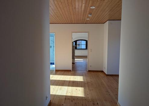 Die Wohnung befindet sich im Dachgeschoss eines renovierten Wohn- und Geschäftshauses im Zentrum von Bad Iburg. Das Haus steht unter Denkmalschutz. Die Nichtraucherwohnung verfügt über einen zugelassenen Kachelofen, Fahrstuhl, Echtholzfußboden (teilweise) sowie Aussenjalusien. Die Wohnung wurde 2013 und 2024 renoviert. Dabei wurde auch die Islolierung erneuert. Der Balkon bietet einen schönen Blick auf das Iburger Schloss. Die Wärmeversorgung erfolgt über eine 2021 installierte Gasheizung; Warmwasser wird teilweise mit Solarthermie erzeugt.