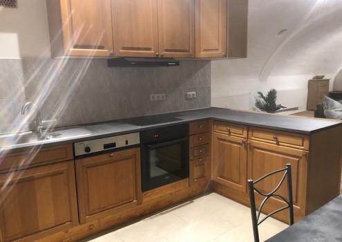 Diese gemütliche Wohnung im Landhausstil ist außerdem ausgestattet mit einer kompletten Einbauküche und rustikalen Massivholzmöbeln stilvoll kombiniert mit zeitgemäßem Mobiliar.