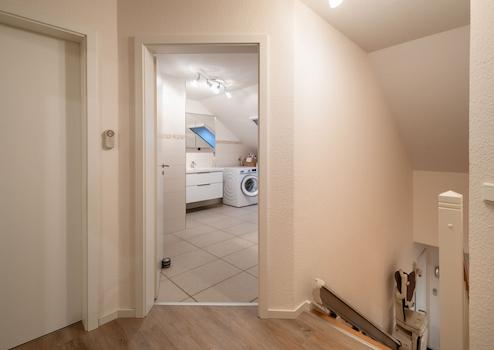 Die Doppelhaushälfte wurde zwischen 2014 und 2015 auf dem 286 m² großen Grundstück erbaut. Rund 135 m² barrierearme Wohn-/und Nutzfläche verteilen sich auf 2 Etagen. Im Erdgeschoss befindet sich der große Flur mit Zugang zu allen weiteren Zimmern: Küche mit Essplatz, großer Abstellraum, Badezimmer mit ebenerdiger Dusche und WC, 2 Zimmer (Schlafen, Gäste, Büro...) sowie der geräumige Wohnraum mit direktem Zugang zur überdachten Terrasse bzw. zum Garten. Die Treppe im Flur führt ins Obergeschoss mit großem Duschbad, einem weiteren Abstellraum und 2 großen Zimmern (Kinder, Schlafen, ...). Über eine Klapptreppe im OG-Flur geht es in den ausgedielten Dachboden (Nutzfläche), der zusätzlichen Abstellraum bietet. Der vorhandene Treppenlift vom EG ins OG kann auf Wunsch übernommen werden (ist im Kaufpreis enthalten), wird ansonsten natürlich vor Übernahme abgebaut. Das gesamte Objekt ist mit Fußbodenheizung ausgestattet, die über eine Erdgas-Zentralheizung (Bj. 2014) versorgt wird. Außerdem wird das Warmwasser mit einer Solarthermieanlage unterstützt. Alle Fensterelemente sind 3-fach verglast. Der kleine Garten ist pflegeleicht angelegt, außerdem gibt es ein Carport mit Abstellraum. Die maximale Internetgeschwindigkeit beträgt lt. Telekom 175 Mbit/s im Download und 40 Mbit/s im Upload. Wichtig für Kurzentschlossene: Die Immobilie ist sofort verfügbar!