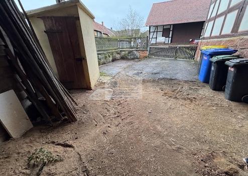Ehemaliges Fachwerkhaus mit Scheune. Renovierungsbedürftig. Anbau der 70er Jahre im EG. Ehemaliger Laden könnte noch ausgebaut werden. Verschiedene Umgestaltungen. Großer Garten hinter dem Haus. Relativ neue ÖL-Zentralheizung mit frei aufgestellten Tanks im ehemaligen Stall. In die Scheune wurde eine Garage eingebaut. Ensembleschutz.
